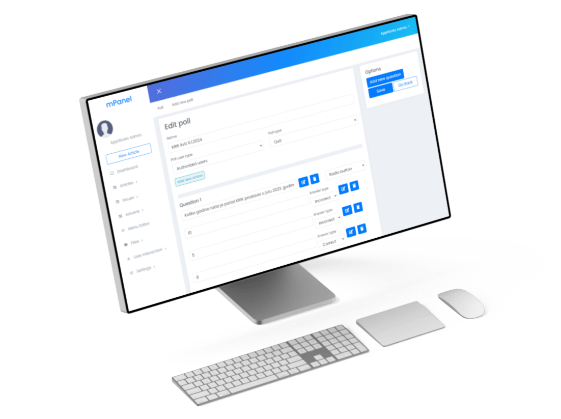 Appworks' Content Management System, which we’ve named mPanel, is designed to streamline the creation, management, and immediate publication of interactive elements like polls and quizzes within our partners' mobile apps and on their websites. We believe these tools are easy to create and can be flexibly adapted to how you distribute content within the app.