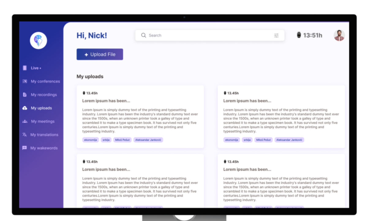 Transcription Management System (TMS) is a web-based tool which will be your transcription central. It allows you to upload audio or video files and transcribe them in minutes. For example, a 60-minute file should not take more than 6-10 minutes for a full AI-powered transcription, which includes fixing some words that the transcription engine might have missed. It will also allow you to view all the transcription you have done through a mobile app or extension, edit words that might have been wrongly understood, and share or download the text. It contains keywords and person names for each transcribed text, which will simplify the content search and it will allow you to quickly translate the text to/from small and big languages through OpenAI's translation capabilities. It even sends automated alerts via wake words. But we don't just stop at functionality – the system is built for teamwork, offering flexible user access, making it a go-to solution for media organizations across the spectrum. |