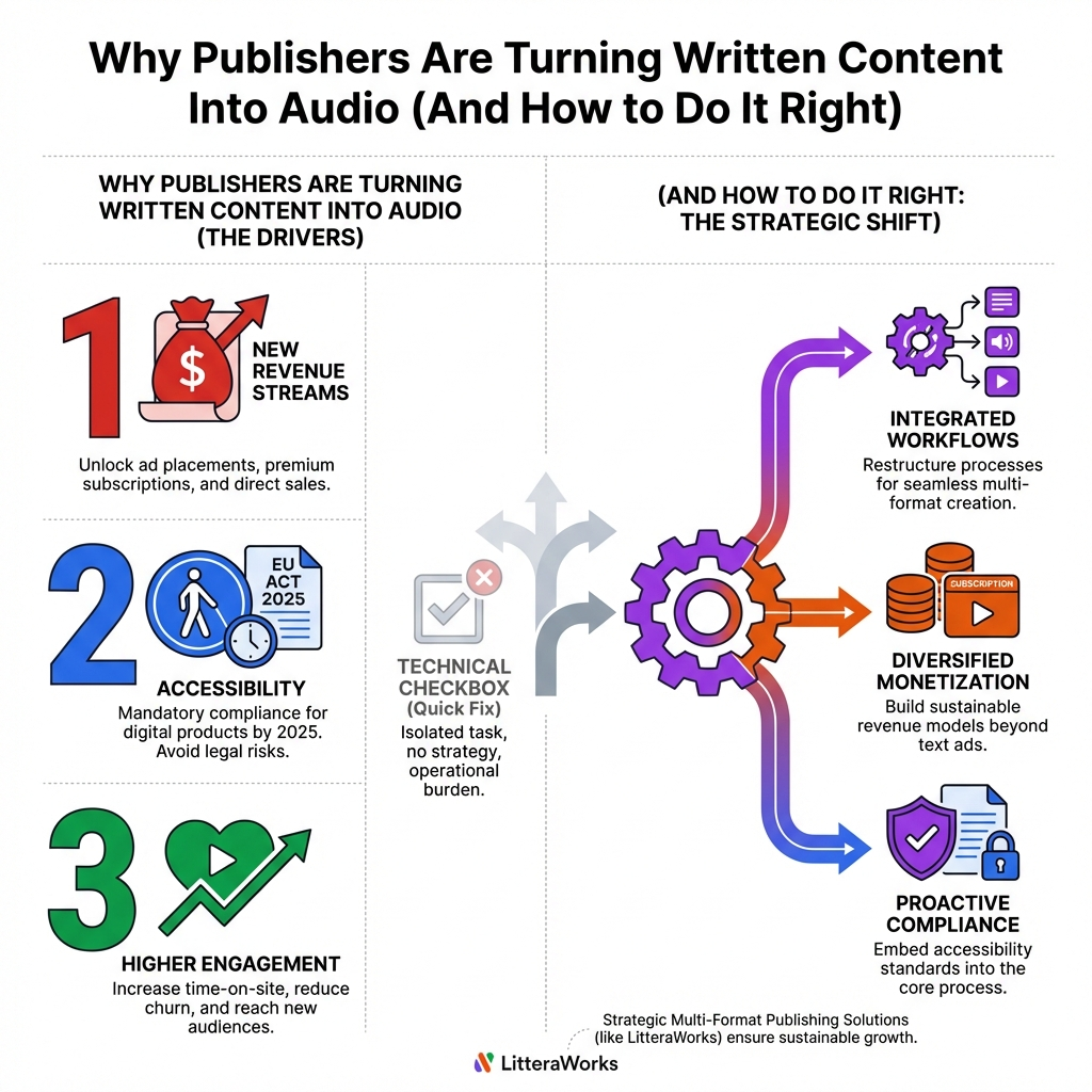 Audio publishing is driven by three converging forces that make it a business imperative, not a nice-to-have feature.